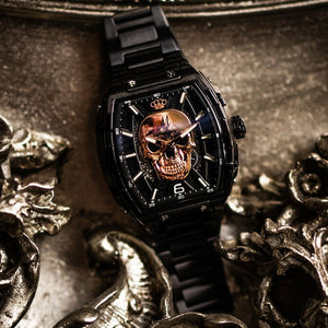 Montre automatique MVL crâne mouvement japonais / bracelet acier noir/noir